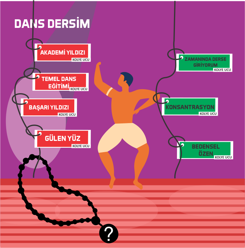 SAHNE IŞIĞI TEMA UCU: Öğrenilen danslar bedenimizle buluştuğunda çekingen ve içe kapanık bir kişilik bedeninin konuşmasını baskılıyacaktır. Bu kapanıklığı yenen ve dans ederken kendini çok iyi hissettiğini gösteren dansçıların ışığı parlayacaktır. “Sahne Işığı Tema Ucu” duvarlarını yıkabilen öğrencilerimize verilecektir.